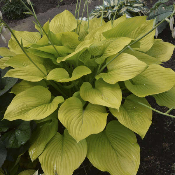 Flowers: White flowers poke up just above the foliage in early to midsummer. An improvement on the classic Hosta ‘Frances Williams’.